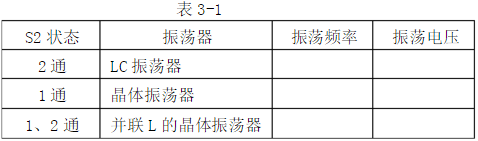 S1關,2S交替接通2(LC振蕩器)和1(晶體振蕩器),或S2的1、2都通,并將數據記于下表中。