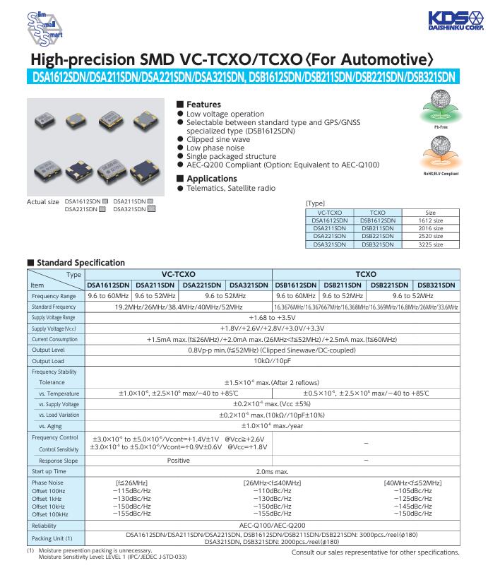 | KDS | 1XTW32768MEA汽車電子晶振 | DSB321SDN | 3225 | 32.768MHZ |