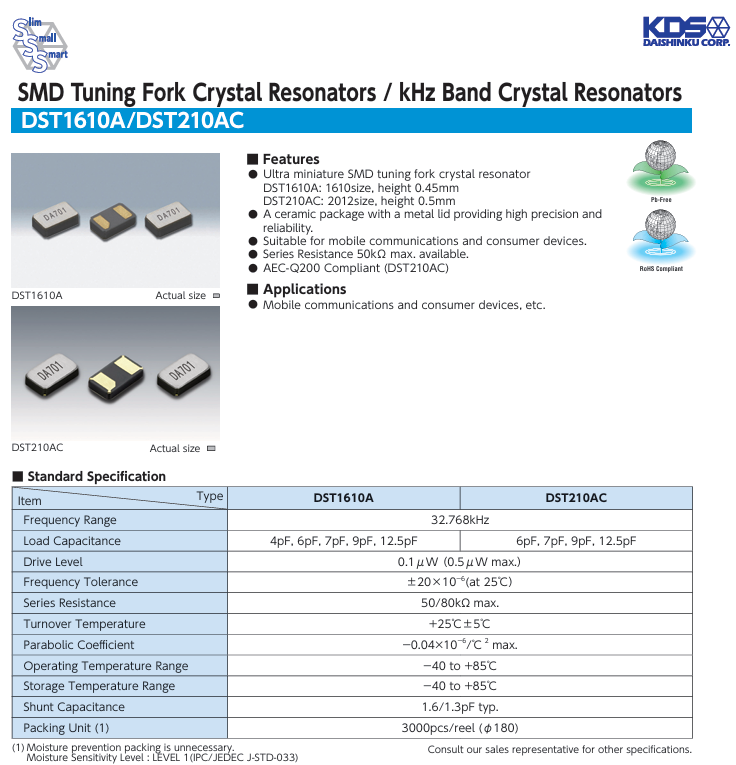 DST1610A  1610  32.768K 12.5PF 20PP  -40+85