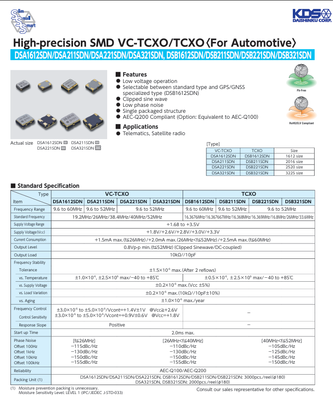 DSA321SDN   3225  21.250M   VC-TCXO有源晶振,車規(guī)寬溫晶振